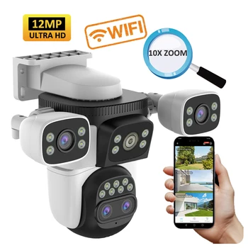 2024 New 4mm 12MP 10X Zoom Camera Wireless WiFi CCTV IP Camera 4 Lens NVR Wireless Home Security Camera 360 720 Rotation CS621ZS
