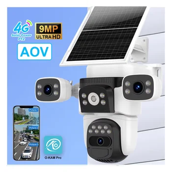 OEM ODM 4G CMOS Storage Notification Phone APP Alert PIR Detection Sim Card Light Cloud Zoom 360 Degree 3 Lens IP Camera